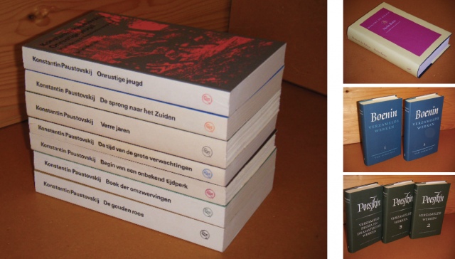 Aurelius, Balzac, Thea Beckman, Blavatsky, Boenin, Bukowski, Castaneda, Celine, Richard Dawkins, Couperus (1e drukken), Dostojewski, Flaubert, Jostein Gaarder, Gogol, Gontsjarov, Gombrowicz, Knut Hamsun, W.F. Hermans, Kafka, Ljeskow, Thomas Mann, Montaigne, Nabokov, Nietzsche, Orwell, OSHO (Bhagwan Shree Rajneesh), Konstantin Paustovskij, Pimenski, Pirandello, Preusler, Marcel Proust, Gerard en Karel van 't Reve, Rilke, Saltykow, Schopenhauer, Seneca, Spinoza, Rudolf Steiner, Toergenjew, Tolstoi, Tonke Dragt, Vasalis en Virginia Woolf.
